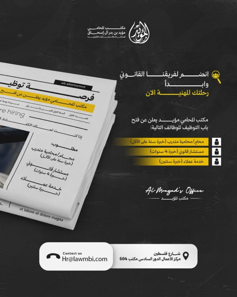 إذا كنت ترى في نفسك الشغف والكفاءة، لا تتردد في أن تكون جزءًا من قصتنا القانونية: